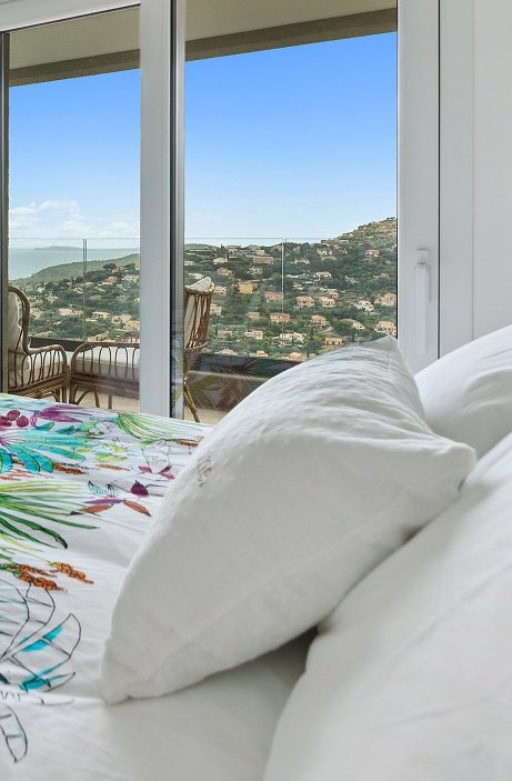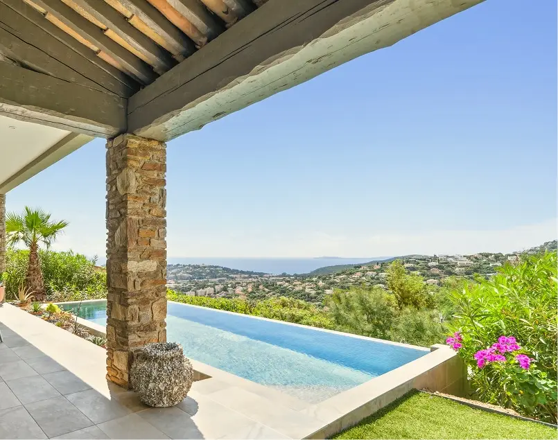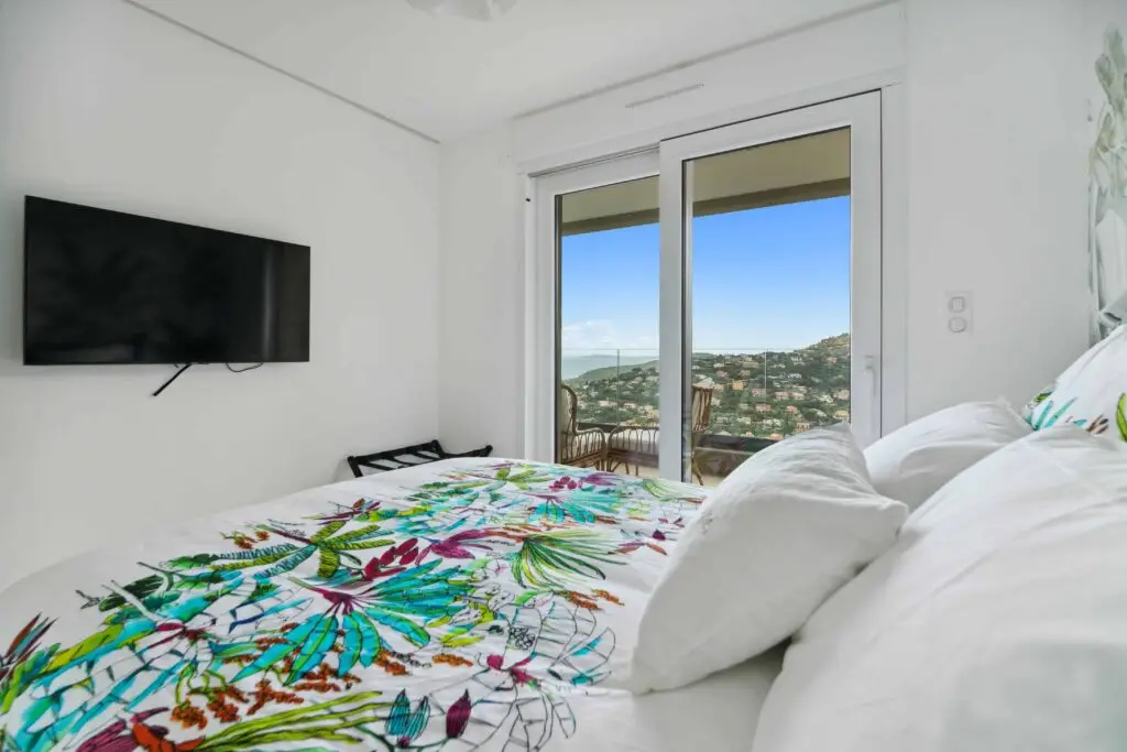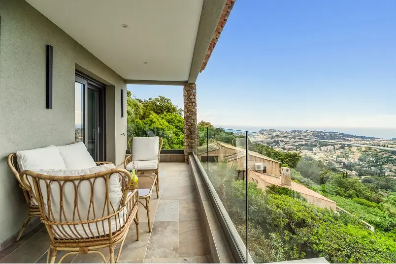 La Villa L’Émeraude offre une vue panoramique sur la Méditerranée depuis sa terrasse et ses espaces de vie ouverts. Nichée sur les hauteurs de Cavalaire-sur-Mer, elle profite d’un environnement calme, idéal pour se ressourcer. Ses chambres lumineuses, sa piscine à débordement et ses extérieurs soigneusement aménagés permettent de savourer pleinement le paysage tout au long du séjour.